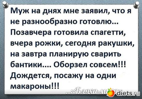 Поняла, пошутила я. Хватает ему - все равно целыми днями за компом сидит. Восстанавливаю в зрительной памяти: крупу берет в пакетиках, мясо в вакууме, сыр для тостов, хлеб тостовый, сок, газировку, готовое в ванночках для СВЧ, печеньки-шоколадки. Блин, неплохо на пензион отоваривается.