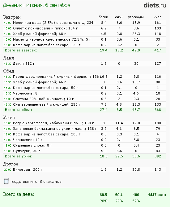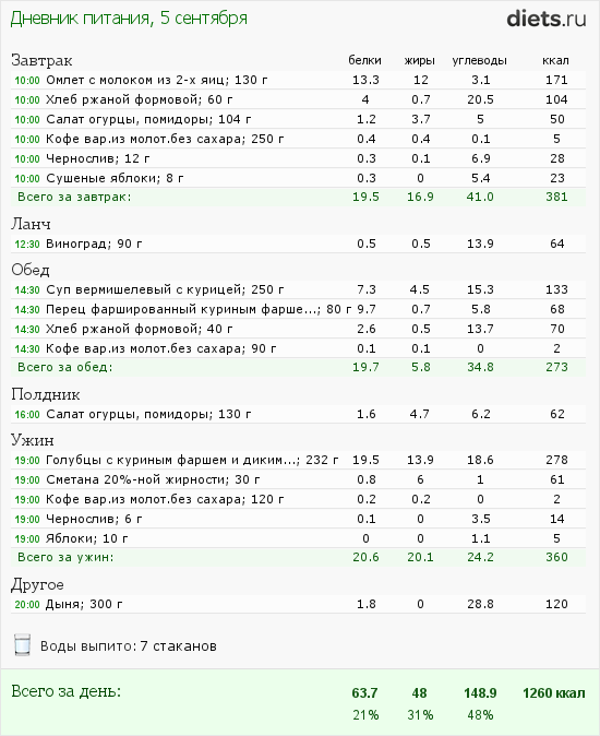 Калорийность продуктов