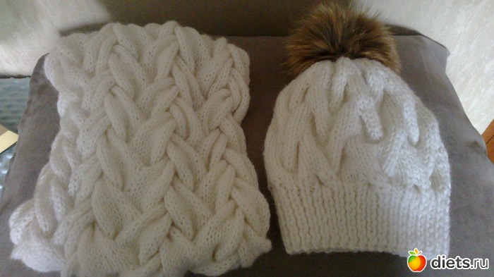 Шапка:http://elisheva.ru/vyazanie/vyazanie-spicami/vyazanie-spicami-dlya-zhenshin/shapki-sharfy-shali2/2820-shapka-s-pomponom-oblako-v-raduge-ot-patons-vyazanaya-spicami.html