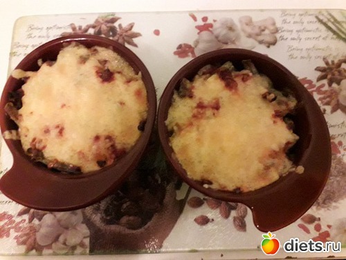Укладываем в кокотницу, ставим в разогретую духовку на 20-25 минут.