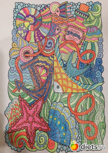 Вот нашла и раскрасила картинку на морскую тематику, пока доча с утра спала