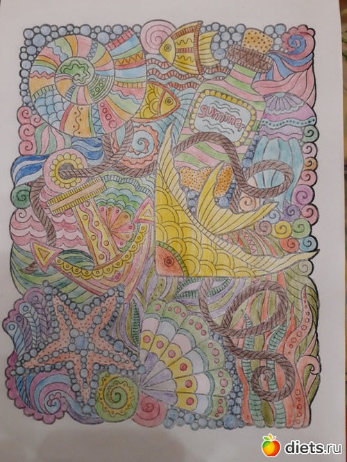 Скачиваем картинку из Инета для раскрашивания. Раскрашиваем, фотографируем, выкладываем. На тему моря и лета. Ностальгируем))