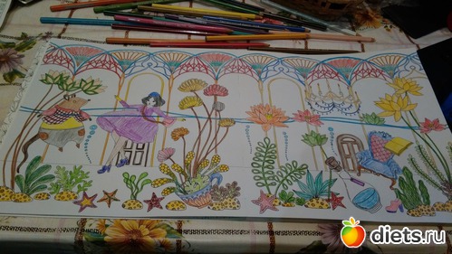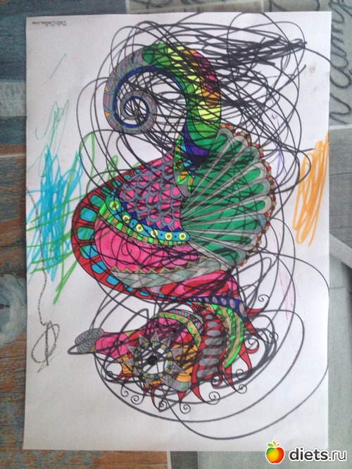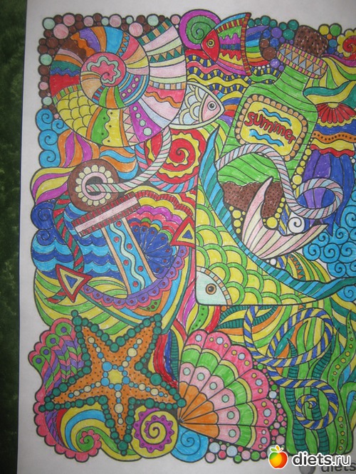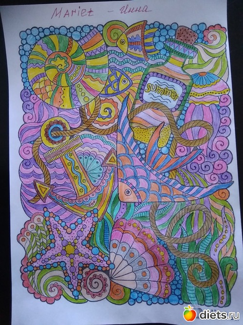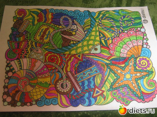 Картинку скачала, разрисовывала почти целую неделю перед сном, спала как убитая. Не могу сказать, что это задание для души, скорее для сна! Можно реально рекомендовать людям с бессонницей!