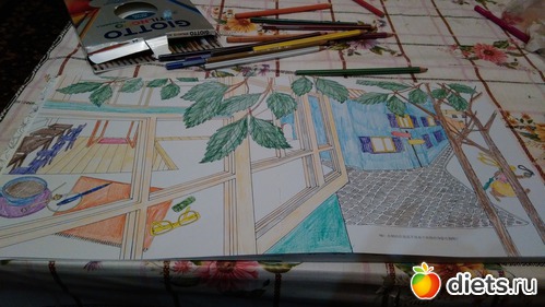 К сожалению, до раскраски не добралась: всё свободное время читала - очень уж книга была интересной.