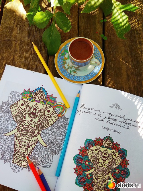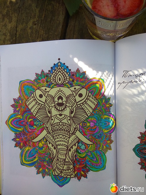 Мне очень понравилось ,брала с собой на работу, на совещание, оно вовремя не началось, народ вокруг нервничал, а я сидела, спокойно разукрашивала, красота просто!!!