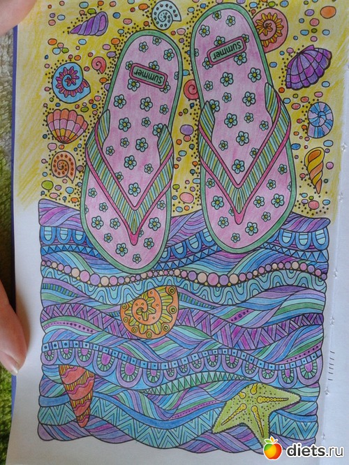 Скачиваем картинку из Инета для раскрашивания. Раскрашиваем, фотографируем, выкладываем. На тему моря и лета. Ностальгируем))