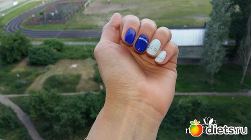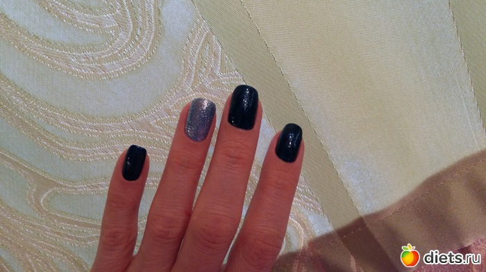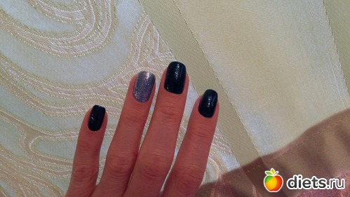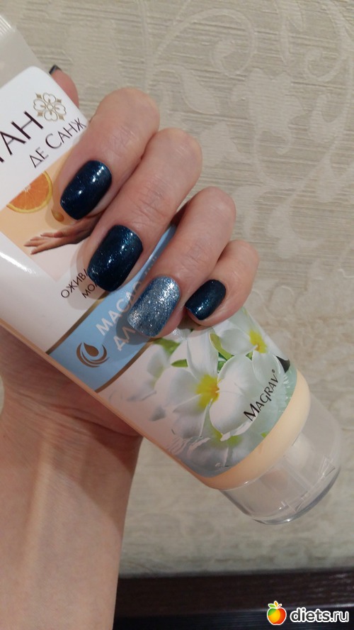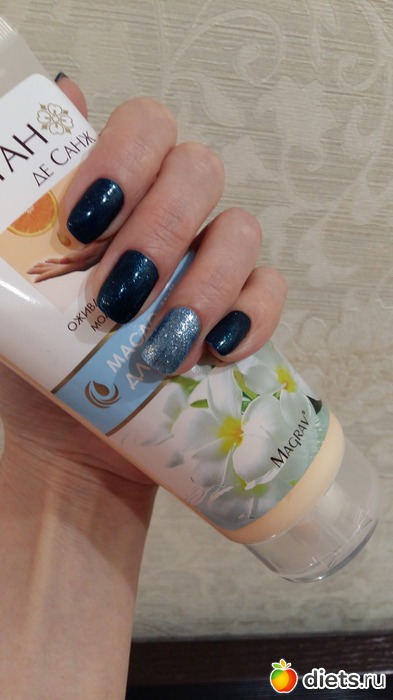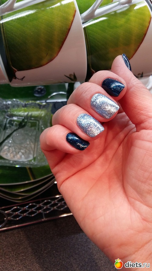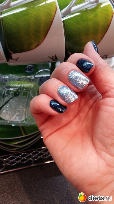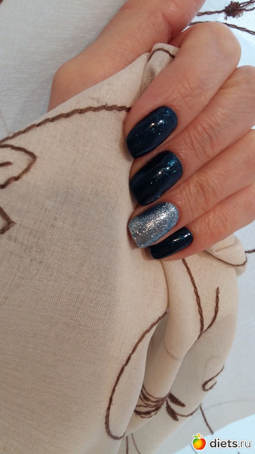 Ну и покажу вам свой маникюрчик. Сразу скажу на фото совсем ни тот цвет. На фото кажется синим, но он больше с зеленью или бирюзой, но очень красивый. Надо будет в следующий раз номер оттенка запоминать, хоть бы из инета показала настоящий цвет. А то как ни фотала, все ни то