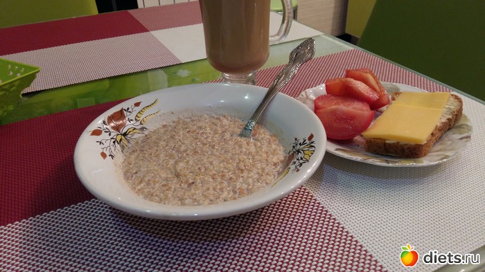 З.каша гречневая+кусочек домашнего хлеба с маслом и сыром+помидорка и кофемолоко