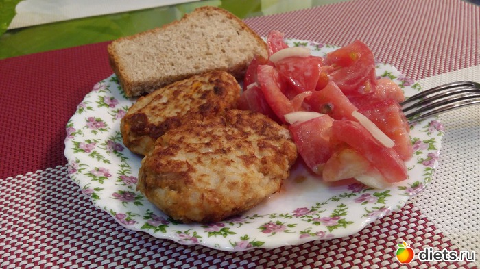 У.котлетки(которые вчера в обед были, рецепт кому интересно во вчерашнем отчете)+салатик и кусочек домашнего хлебушка
