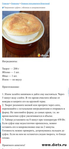 Diets.ru Сегодня на ужин будет суфле с творогом.