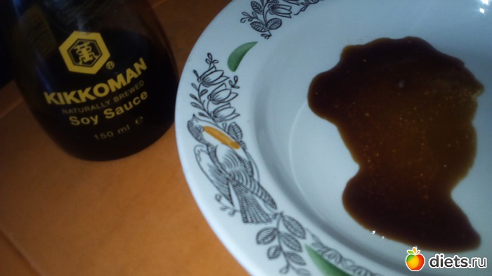 Соевый соус соединяем с сахаром и хорошо перемешиваем.