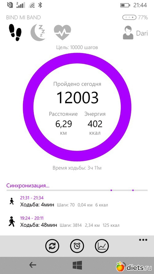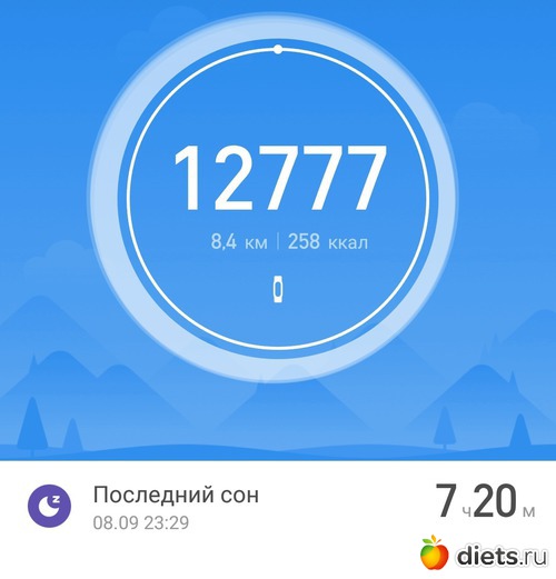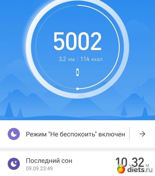 - режим сна 22 / 6, и в 21 час будильник оповещает мне, что пора готовиться ко сну.