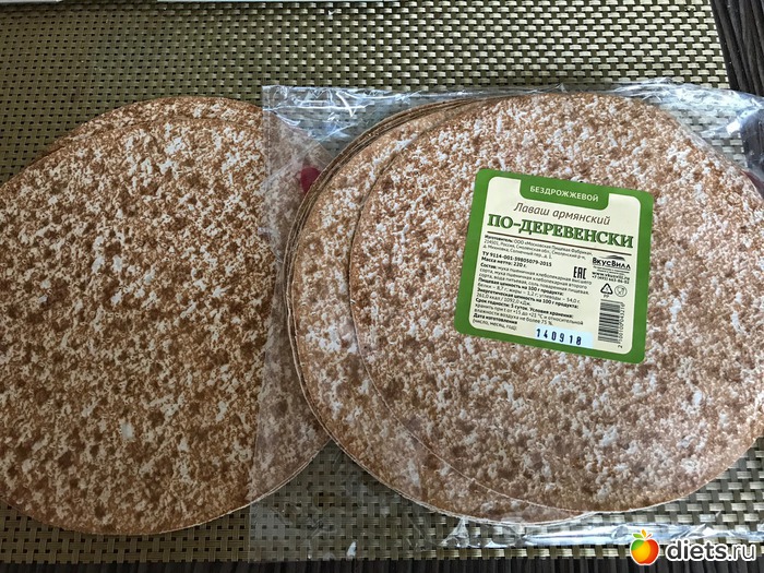 Купила сегодня вот такой лаваш. В упаковке 12 листов. Мне их хватит оооочень надолго. заморозила на "потом".