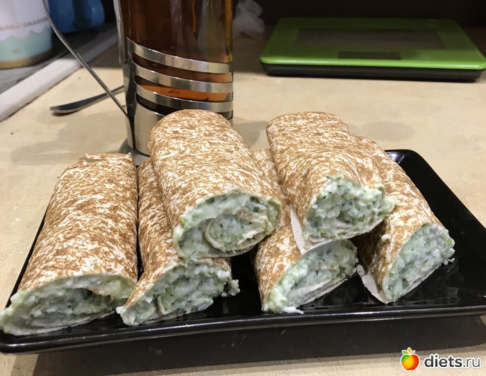 На ужин сделала лаваш с сыром, фетой, яйцом и огурцами.