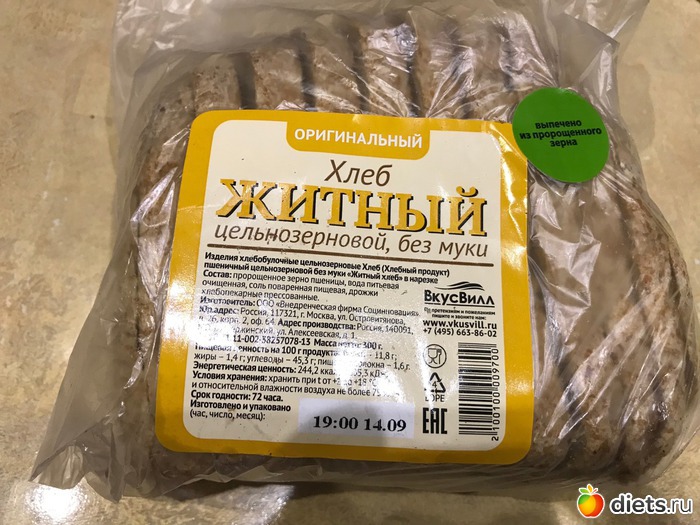 Еще новый хлеб купила. Написано, что выпечено из проросшего зерна. Не могу сказать, что вкусно, но съедобно, не противно.
