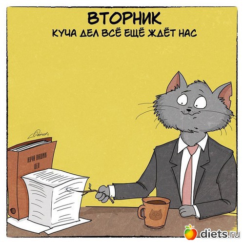 — Значит, Дмитрий, нам придется посадить вас на диету. Смотрите: Понедельник — яблоки, Вторник — рыба, Среда — только минеральная вода...