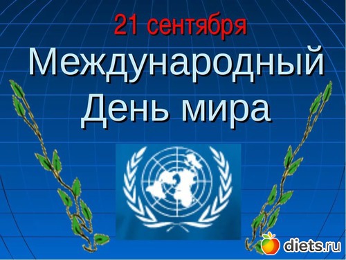 В 1981 году своей резолюцией 36/67 Генеральная Ассамблея ООН провозгласила этот День, установила его празднование на третий вторник сентября и посвятила его ознаменованию и укреплению идеалов мира как внутри государств и народов, так и между ними. А спустя 20 лет, в 2001 году, Генеральная Ассамблея единогласно приняла резолюцию 55/282, в которой постановила, что с 2002 года Международный день мира будет отмечаться ежегодно 21 сентября как день всеобщего прекращения огня и отказа от насилия. Для большинства людей планеты Земля мир — это повседневная реальность. На наших улицах спокойно, наши дети ходят в школу. Там, где устои общества прочны, бесценный дар мира может никем особенно и не замечаться. Однако, для слишком многих людей в современном мире этот дар — не более чем сказочная мечта. Они живут в оковах, в атмосфере нестабильности и страха. Для них-то в основном и существует этот день, установленный ООН в 1981 году. С тех пор этот праздник вовлек миллионы людей, охватив многие страны и регионы, где силами общественных и молодежных организаций проводятся различные акции и мероприятия. Ведь День призван заставить людей не только задуматься о мире, но и сделать что-нибудь ради него...