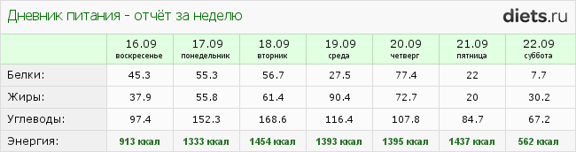 8. и еще, все таки просчитать сколько калорий я употребляю, пусть даже на диете, и составить правильное меню на следующую неделю (ну хотя бы просто просчитать что я ем, а то что-то я сильно разошлась)... - что ем считала (но правда на белково-углеводных чередованиях монодиет эти циферки так, опираться на них нельзя, до нужного мне каллоража не добираю)