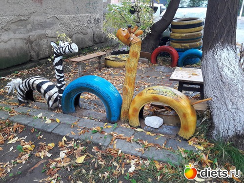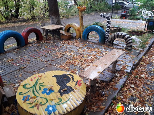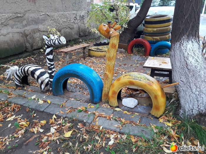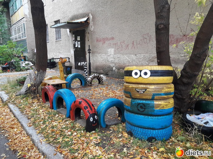И опять хочется сказать доброе слово людям-энтузиастам. Это ж как раскрасили своим деткам детство, во дворе детской площадки нет, так они не унывают и сами её создают. На крохотном отрезке земли.