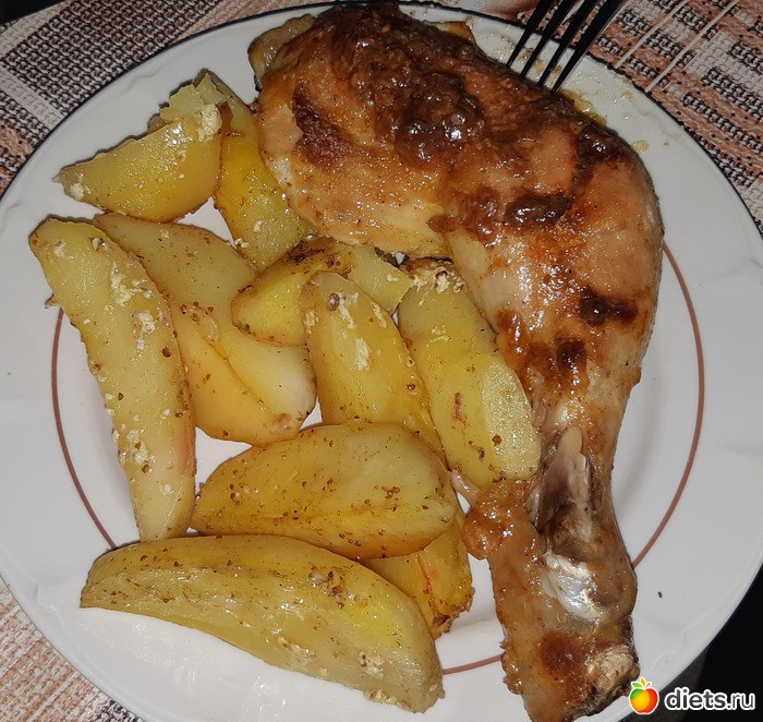 Маринад: 3 ст л соевого соуса, 1 ч л горчицы, 1 ч л мёда, приправы любимые.