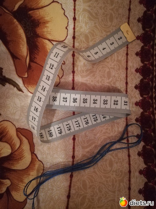 Купила наконец себе сантиметровую ленту для измерения параметров. А синяя ниточка, верой и правдой служившая мне 3 месяца, теперь уходит на заслуженный отдых