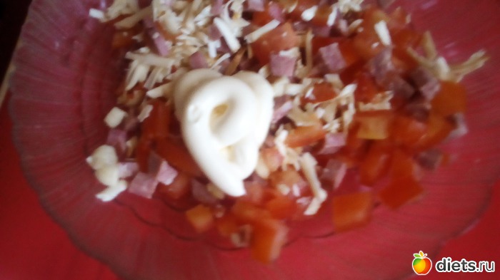 Салат заправляем 2-мя ст. л. майонеза(или заправки на Ваш вкус) и перемешиваем.