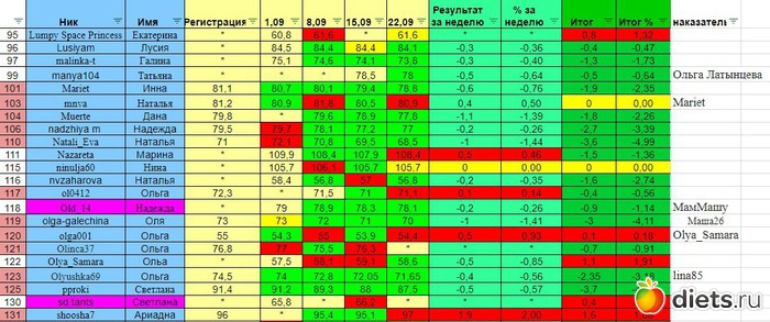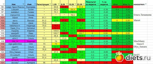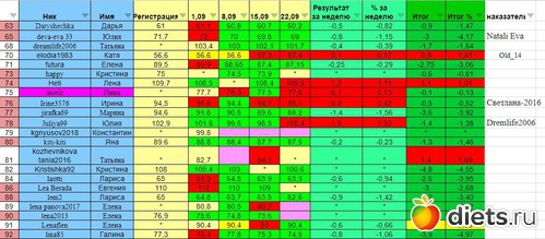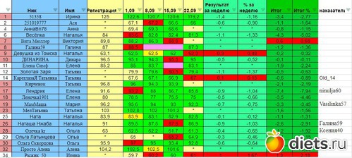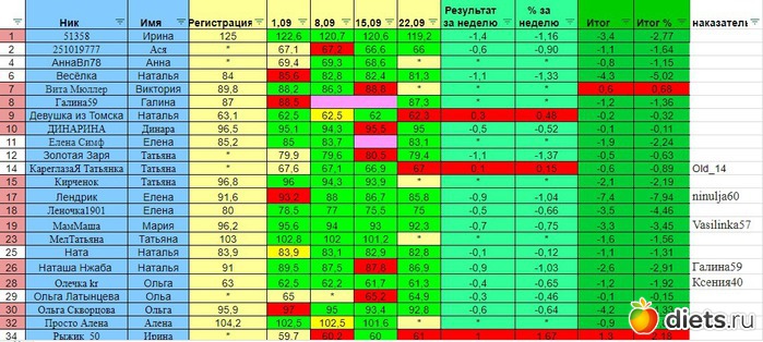 Я понимаю, что все живут в разных поясах, но именно по-этому на отчёт даётся ДВОЕ СУТОК (пятница и суббота). Единственное условие, что эти сутки определяет временной маркер сайта Диетс. Если с субботой у вас такой промах получается - делайте отчёт в пятницу. Или фотографируйте вес четверга и загружайте его 2 дня. Выбор за вами.