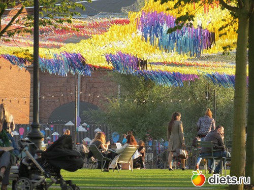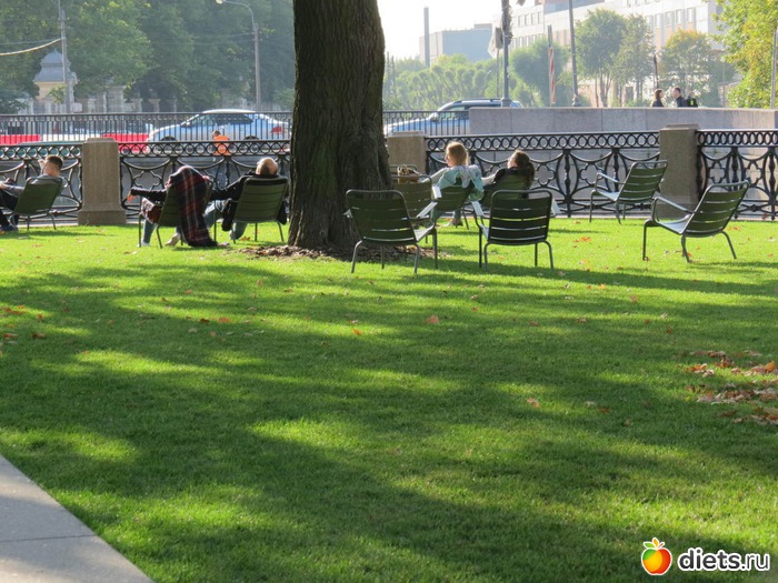 А когда зашла внутрь, то вообще..., решила, что умерла и попала в рай, увидела сидящих на стульчика людей. Они подставляли свои лица солнышку, оно так редко бывает в Питере, тем более осенью. Да и зима уже близко, надо щедро впитывать тепло, свет и витамин Д.