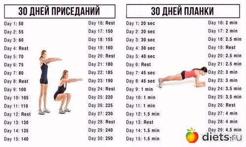 В бассейн не ходила, была профилактика, так что на следующую неделю планирую сходить 3 раза! Зато активно занималась планкой и приседаниями по плану- схеме: