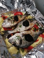 Также в фольгу желательно заворачивать каждую рыбку отдельно, так получается сочнее и удобнее ее потом подавать на стол. Но у меня фольги остался маленький кусочек, поэтому вот так: