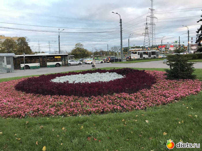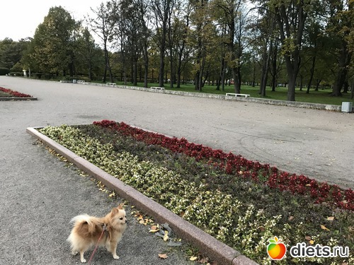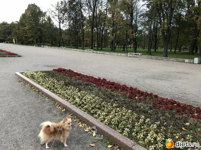 Совместила с полезным - Саню прогуляла. Ветер холодный и вообще холодно, но цветы еще цветут и фонтаны не отключили.