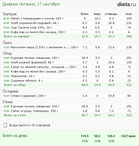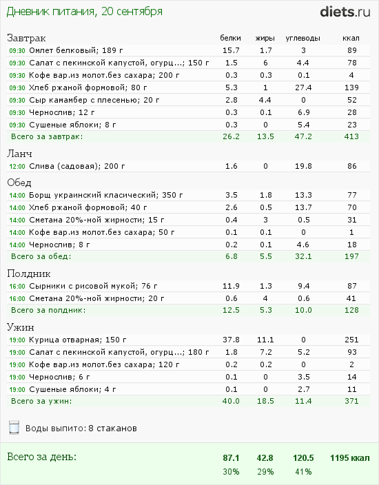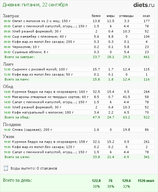 21 сентября нет меню. 21 числа исследования кишечника назначили на 15.00 в два часа дня сахар упал до 2,4 пришлось кушать сладкое подымать сахар, так что на исследования не поехала, к вечеру стало совсем плохо, хотя я в поликлинике предупредила что у меня диабет и так поздно исследования мне нельзя назначать, на что мне ответили ничего у нас диабетики проходят ничего страшного. И началась у меня свистопляска со здоровьем 22 потеряла сознание, затем пошли боли в сердце, затем почки, после падения, так ушиблась, что сломала мост., с давлением стало не понятно что, то подымается, то падает, постоянная слабость. Все исследования что я 3 недели проходила нужны были для операции на карпальном канале правой руки. (боли замучили). По состоянию здоровья отменили операцию. Теперь нужно делать зубы и приводить организм в порядок после такого стресса. Мне хирург говорит это ваш организм бастует против операции