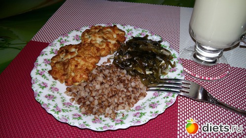 Ужин: котлеты с салатом, без каши. Молокочай.