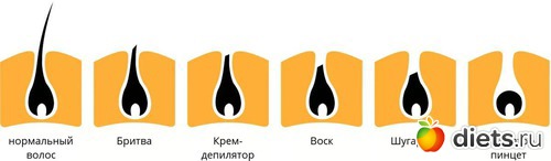 Первое отличие сахарной депиляции от восковой — в более глубоком проникновении. «Полномочия» воска оканчиваются на поверхностной части волоса, сахарная же глазурь проникает в самые устья фолликулов. Воск справляется с волосиками в 5 мм, а сахар депилирует волосинки длинной в 2 мм.