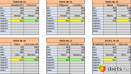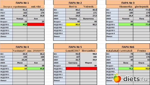 Вес тот же.Сейчас,Леночка я не соперник тебе.Нет мне покоя сейчас с ремонтом этим,послезавтра гостей жду.Там поездки,посиделки.Но я стараюсь,барахтаюсь.Как раз догонишь и рванем с новыми силами потом