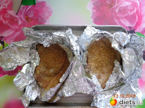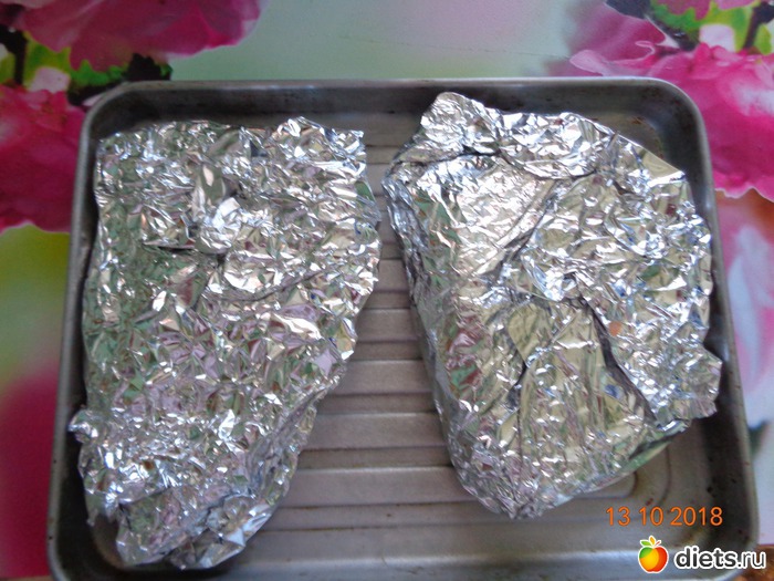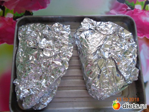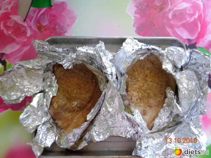 Рецепт очень прост. Натираем свинину солью и специями по вкусу, заворачиваем в фольгу, и ставим в духовку при температуре 200 - 250 градусов на 40 - 45 минут.