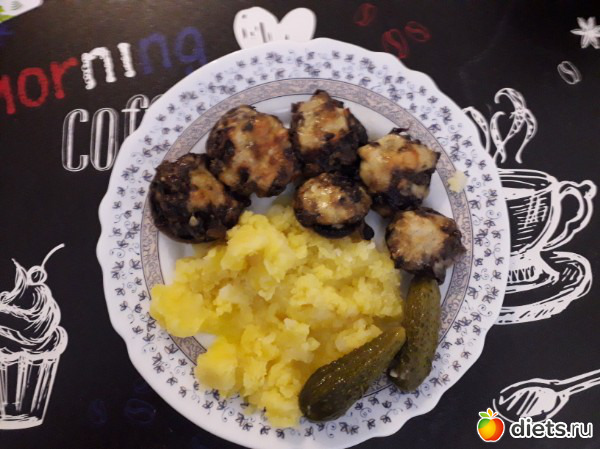 Кладем на тарелку. Я люблю грибы именно с пюре, поэтому у меня так