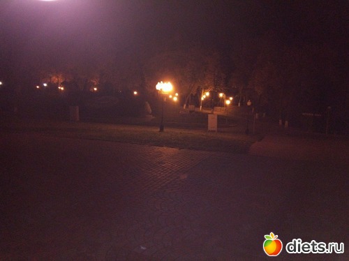 Днем бегала по квартире: стирать, гладить, мыть, готовить. Соблюдала условия диеты, но только есть начала с обеда. Пропустила и завтрак, и ланч. Телефон с шагомером естественно лежал на полочке. В 20.00 гляжу - до 8000 еще 3500! Срочно собрали детей и потащили на прогулку. Вот наш детский парк, темный и страшный, мы в него не пошли, вокруг катались с колясками.