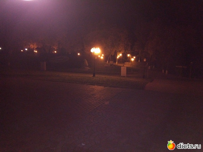 Днем бегала по квартире: стирать, гладить, мыть, готовить. Соблюдала условия диеты, но только есть начала с обеда. Пропустила и завтрак, и ланч. Телефон с шагомером естественно лежал на полочке. В 20.00 гляжу - до 8000 еще 3500! Срочно собрали детей и потащили на прогулку. Вот наш детский парк, темный и страшный, мы в него не пошли, вокруг катались с колясками.