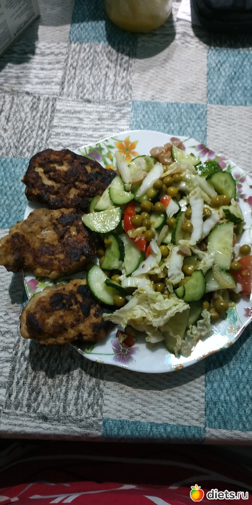 Половина котлет с обеда, овощной салат