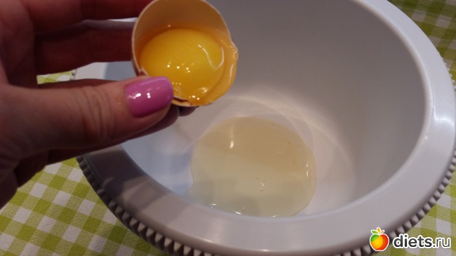 Отделяю белки от желтков, я использовала белки от 2 яиц