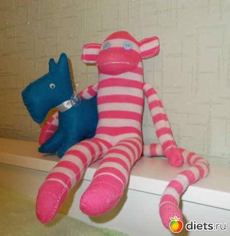 А я для своего среднего внука сшила обезъянку, ему уже 8 лет, а он до сих пор с ней играет