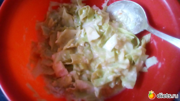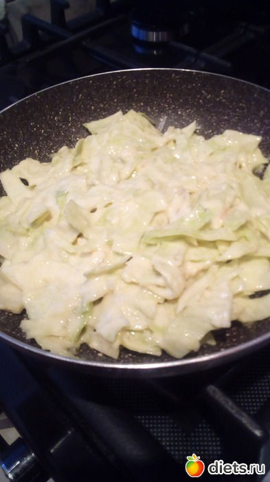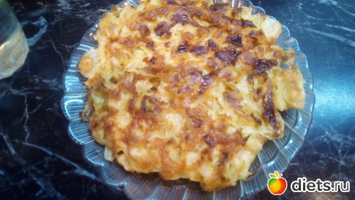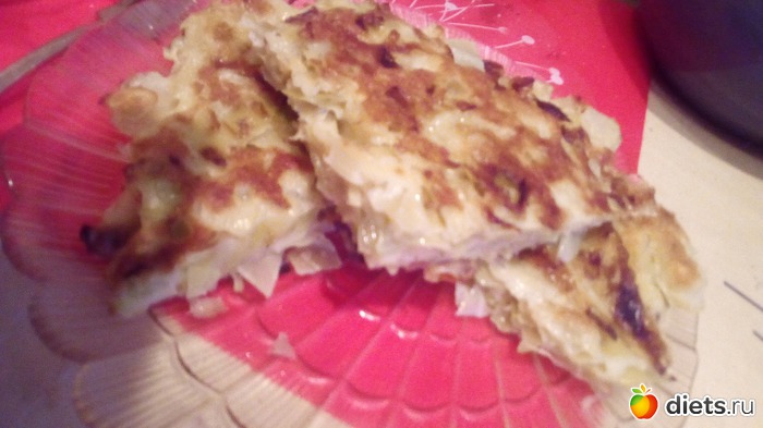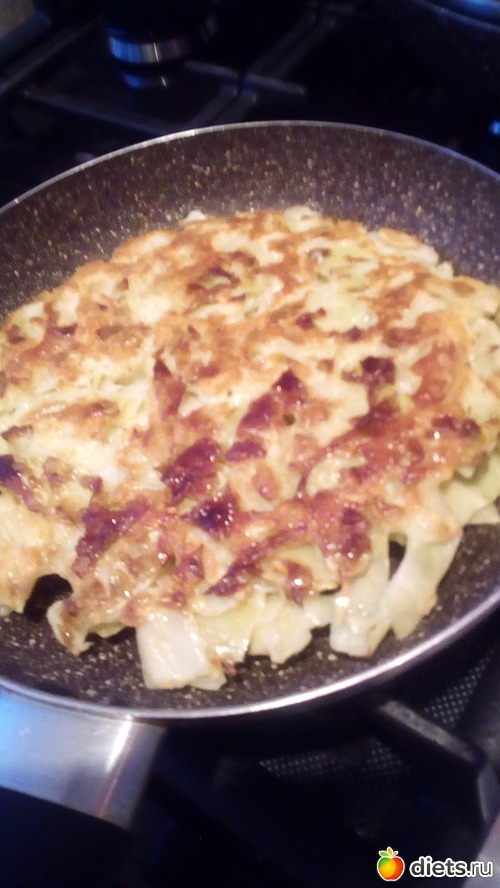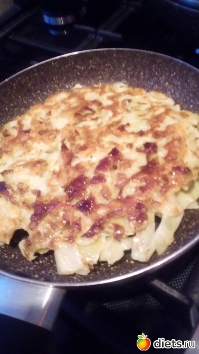 Можно всю массу проблендерить-и тогда пожарится быстрее капустный блин! Я не стала этого делать-захотелось, чтобы капуста была кусочками!