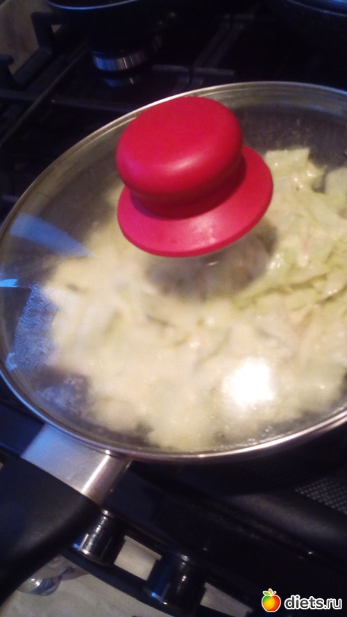 Сковороду хорошо разогреть, смазать растительным маслом и выложить капустную массу, разровнять и выпекать минут 5 на небольшом огне под крышкой.