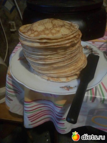 У-блинчики ( очень вкусные сестра приехала напекла ) и кусочек тортика (сестра спекла, очень вкусно ) с чаем