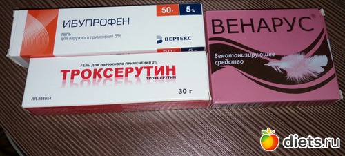 Чтобы хоть как то помочь ножками делаю ванночки с морской солью и мажу Троксерутином.