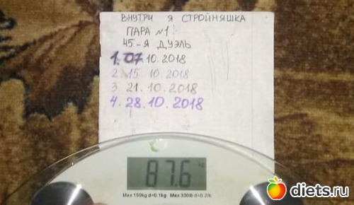 Забыла сфотографировать утром, так что выставляют вечерний вес(((