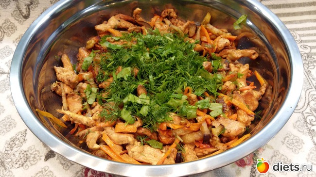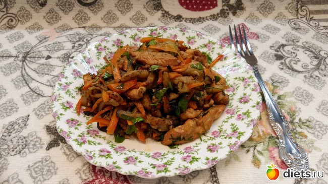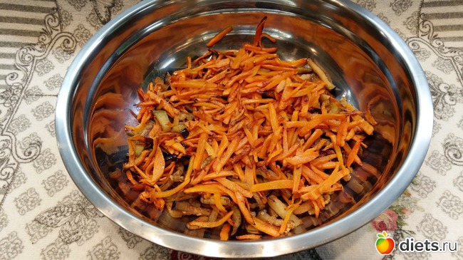 Диетически, можно постараться пожарить с минимумом масла: потушить с водой, потом соединить и заправить маслом.