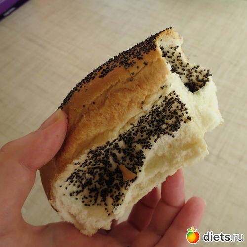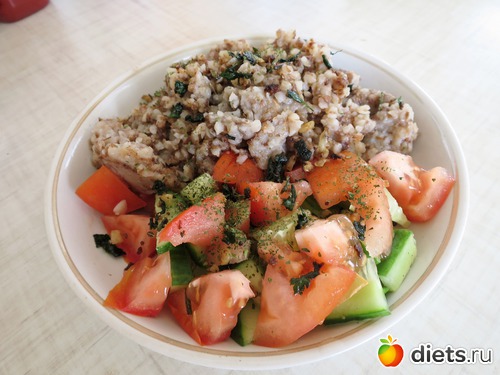 Обед - гречка с овощами + хлеб конечо же + вот даже чуть чуть не по плану съела булочку с маком