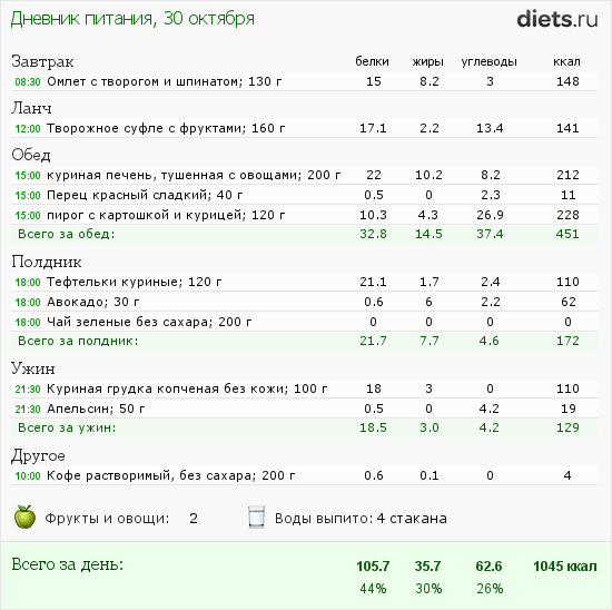 Калорийность продуктов